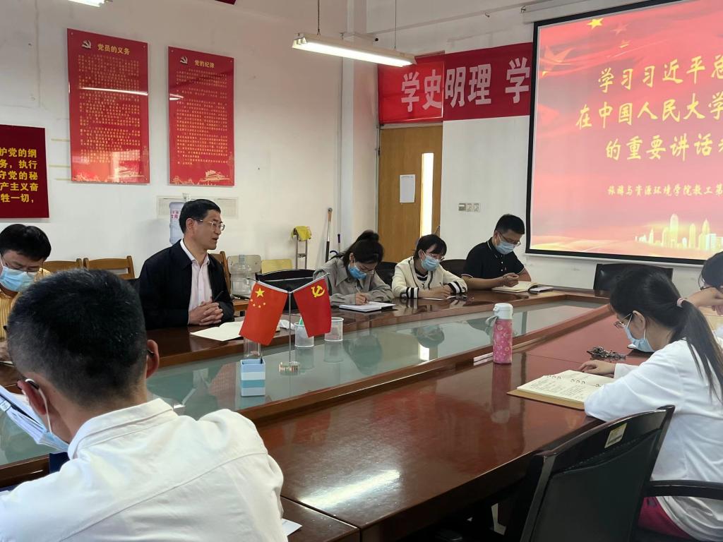 5月4日,hth华体育官网党总支理论学习中心组在理工楼2514会议室集体学习习近平总书记在中国人民大学考察时的重要讲话精神。院党总支书记刘玉宝主持学习并讲话,学院党政领导、党总支委员参与了学习。
