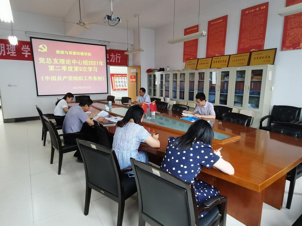 6月25日上午,院党总支理论学习中心组在理工楼2514党员活动室集中学习《中国共产党组织工作条例》(以下简称《条例》)。院党总支书记陆德国领学并讲话,学院党总支理论学习中心组全体成员参加学习。