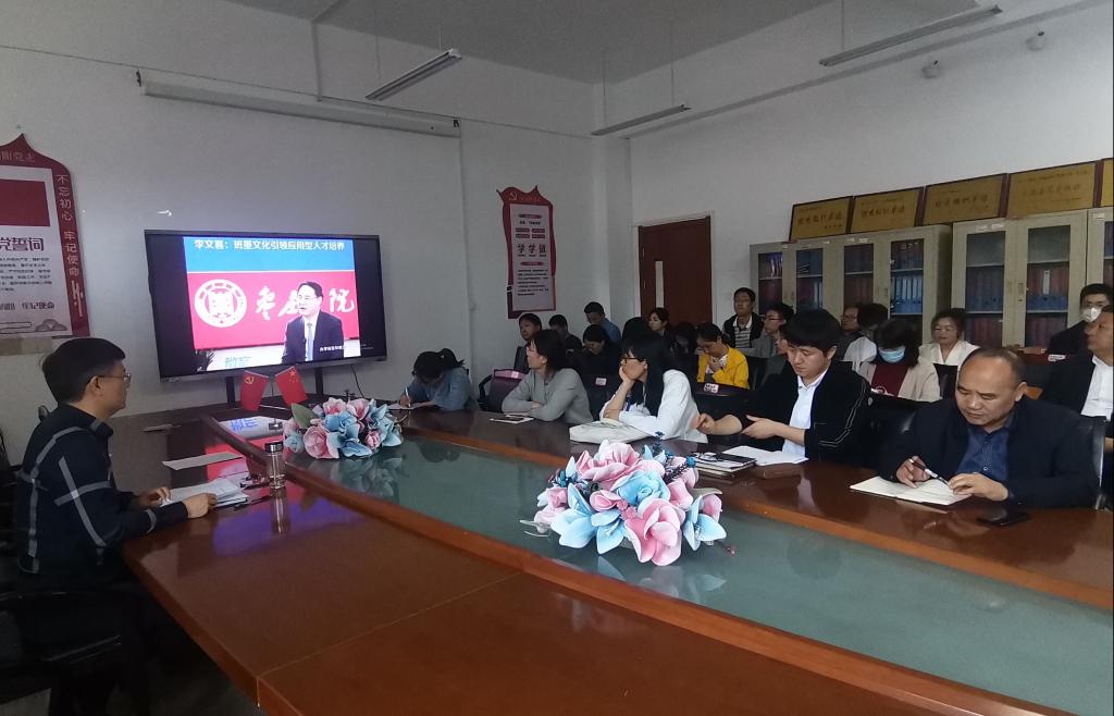 此次教研活动由hth华体育官网院长王满堂主持。全体专任教师首先学习了《hth华体育官网“班墨+”文化育人工程项目建设实施方案》,随后观看了山东教育电视台《教育1+1》栏目李文喜校长的专访视频。教研活动紧紧围绕实施方案中的构建多学科“班墨+”课程体系,拓展多特色“班墨+”课堂教学体系,构建多样化“班墨+”文化育人体系,健全多层次“班墨+”实践活动体系以及打造“班墨+”卓越匠心人才培养机制进行了深入讨论。专任教师就如何结合专业、课程特色和课堂教学实际,不断深化课程改革、课堂教学改革开展“班墨+”文化育人工作纷纷发表了意见和建议。
