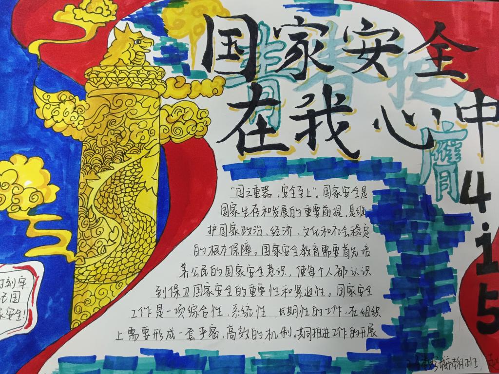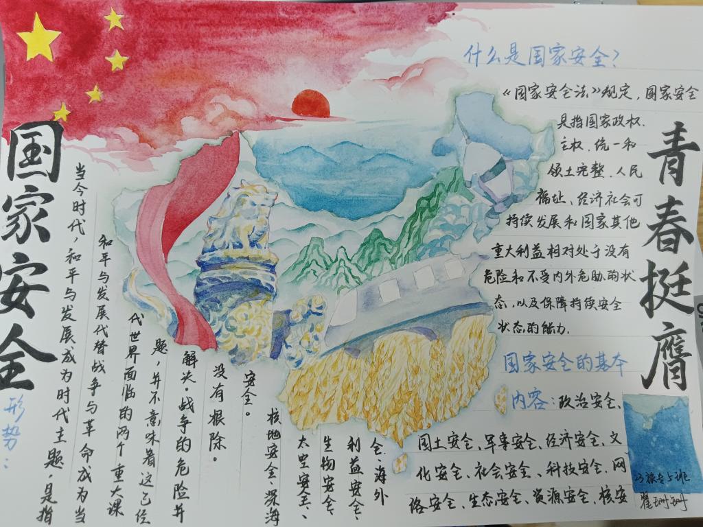 为深入贯彻落实习近平总书记关于加强国家安全教育的重要指示批示精神,切实提升学生国家安全意识和素养,推动总体国家安全观深入人心,4月9日,hth华体育官网开展“国家安全,青春挺膺”手抄报比赛活动,此次活动由2022级和2023级全体学生参加。