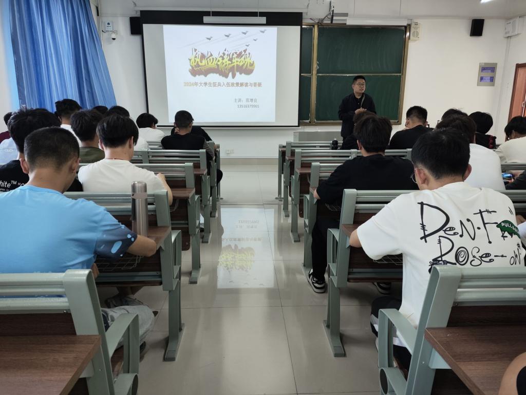 为积极响应国家征兵号召,进一步贯彻学校征兵工作会议精神,鼓励学生应征入伍。5月9日,hth华体育官网在崇德楼4405教室召开2024年大学生征兵入伍政策解读与答疑宣讲会。本次会议由范增良主持,hth华体育官网各班级男生参加。