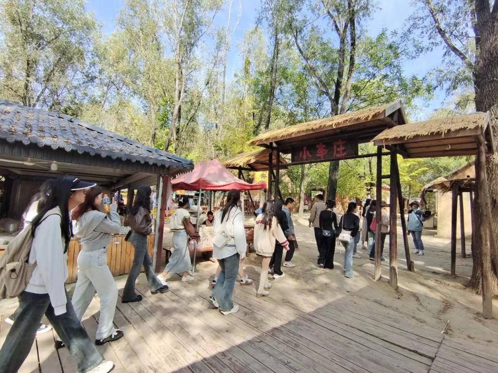 在湿地管委会领导精心组织和带队老师、景区讲解员的现场讲解下,各项实习任务有序开展。同学们参观了红河塔、粉黛区域、荷花精品园等景点,随后坐船浏览微山湖湖面,并实地参观盘龙岛——小李庄景点,其中小李庄为电视剧《铁道游击队》的实景拍摄现场,同学们在参观的过程中认真学习了当年铁道游击队的英雄事迹。此外,为了更好地帮助学生们了解实际工作环境和培养实践能力,现场教学路线按专业被分为两个不同的组别,旅游管理(国际旅游方向)专业学生参观了生态水道和微山湖湿地博物馆等景点,酒店管理(国际职业经理人方向)专业学生参观了微山湖火车主题小镇以及金蜗牛房车营地等景点,并就景区民宿的建设与发展等问题与管委会主任张崇辉深入讨论,使学生们对自己的专业有了更深的了解,在实践中巩固所学知识。