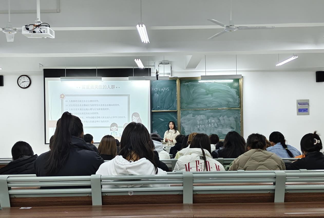 此次会议,主讲人围绕“心理健康知识概述”、“心理委员角色定位和职责”、“需要关注的群体”、“发现心理问题同学如何做”等方面展开讲述,帮助心理委员们增强责任意识、明确工作职责,提高工作水平。同时,针对当前学生常见的心理问题,主讲人通过案例分析、问题讨论等形式进行答疑解惑,并向同学们介绍有关心理咨询的专业知识。主讲人强调,学生心理健康同其学习生活密切相关,各班心理委员要坚持深入个体,精准发力,切实提高学生的心理健康服务保障水平,做同学们的心灵守护者。
