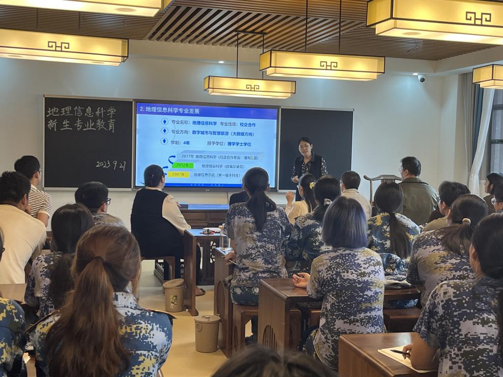 金秋九月,丹桂飘香,地理信息科学专业迎来了2023级新生。为帮助新生了解新专业、适应新生活,树立新目标,合理规划大学时光,hth华体育官网精心指导安排,由地理信息科学教研室牵头,共同为新生准备了丰富多彩的入学专业教育。2023年9月27日下午,以豁然楼C507教室为主会场,报告由教研室主任凌娟副教授主持,专业负责人杜霞教授和企业驻校工程师高恒老师主讲,全体地理信息科学专业教师出席会议。