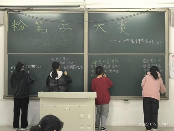 本次活动以创建优良学风为目标,坚持教育引导、监督约束的原则,多措并举扎实推进学风建设月活动开展。在思想引领上,通过召开线上班会、学习经验交流会和学生学风座谈会,解读疫情政策,安抚学生情绪,鼓励同学们要完成从被动学习到主动学习的转变,找到适合自己的学习方法。在学习交流上,通过开展粉笔字大赛、地理科学专业师范生技能测试比赛和绘画展板,营造了hth华体育官网良好的育人氛围,提升了学生职业技能和专业素质,充分展示了hth华体育官网学子扎实的基本功与专业的书写水平,达到“以赛促教、以赛促学、以赛促改”的目的。在日常管理上,通过开展学业帮扶和学风检查活动,hth华体育官网辅导员班主任下沉宿舍,了解学生的学习生活、家庭、社会交往等情况,现场帮助解决学生实际问题,并进行心理健康、安全等知识教育。