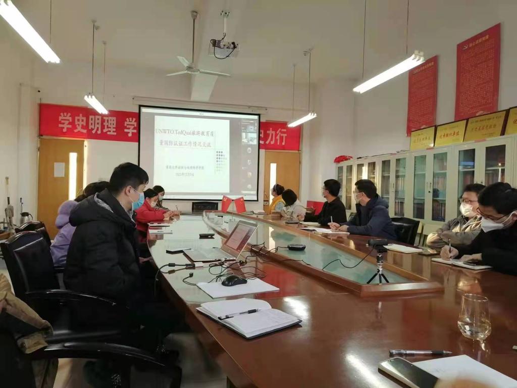 为加强旅游类专业建设,提升本科教学质量,2022年12月5日下午,hth华体育官网邀请青岛大学旅游与地理科学学院院长肖建红教授、院长助理赵玉宗教授通过腾讯会议作联合国世界旅游组织教育质量认证培训。培训会由hth华体育官网院长王满堂主持,全体专任教师参加了此次培训会。