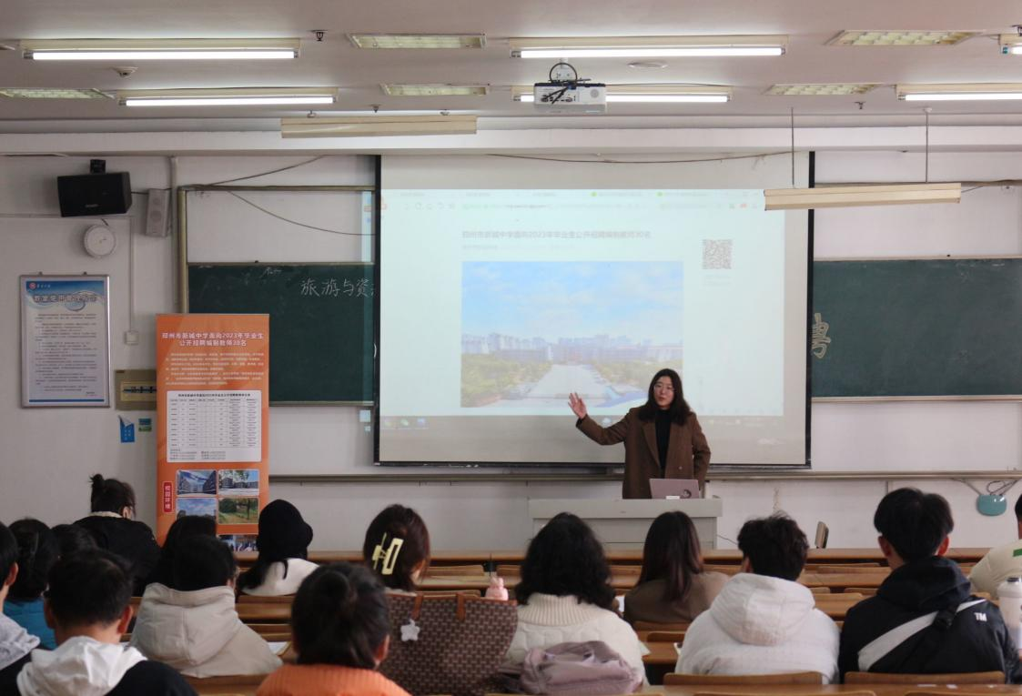 为推动hth华体育官网学生高质量就业,搭建学生与用人单位双向选择平台,3月1日,hth华体育官网在综合楼311教室举办邳州新城中学校园招聘会。负责此次招聘会的是邳州新城中学副校长王建新,2025届地理科学专业40多名应届毕业生参加了此次招聘会。