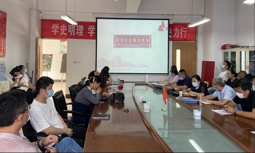 院党总支书记刘玉宝对全体教工提出三点要求:一是要切实加强意识形态阵地管理,时刻保持政治清醒和立场坚定;二是要强化自我教育和“警示教育”力度,坚决抵制不良风气的侵蚀,以实际行动更好地完成本职工作;三是要以此次会议为新起点,筑牢自我意识形态领域安全防线。