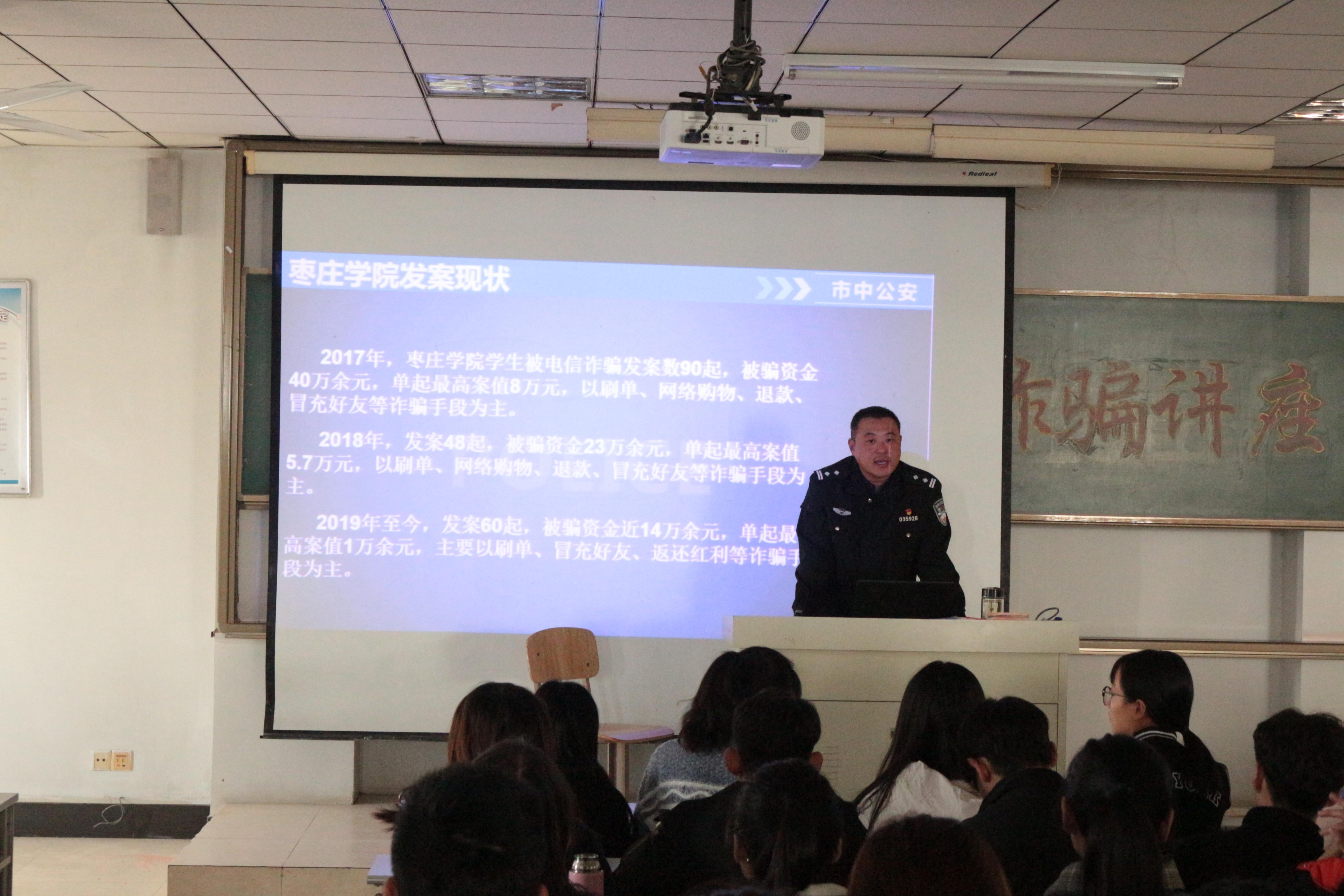 12月4日下午,hth华体育官网在理工楼2505教室开展防诈骗安全教育讲座。本次讲座由渴口派出所刘鹏教导员主讲,200多名学生聆听了讲座。