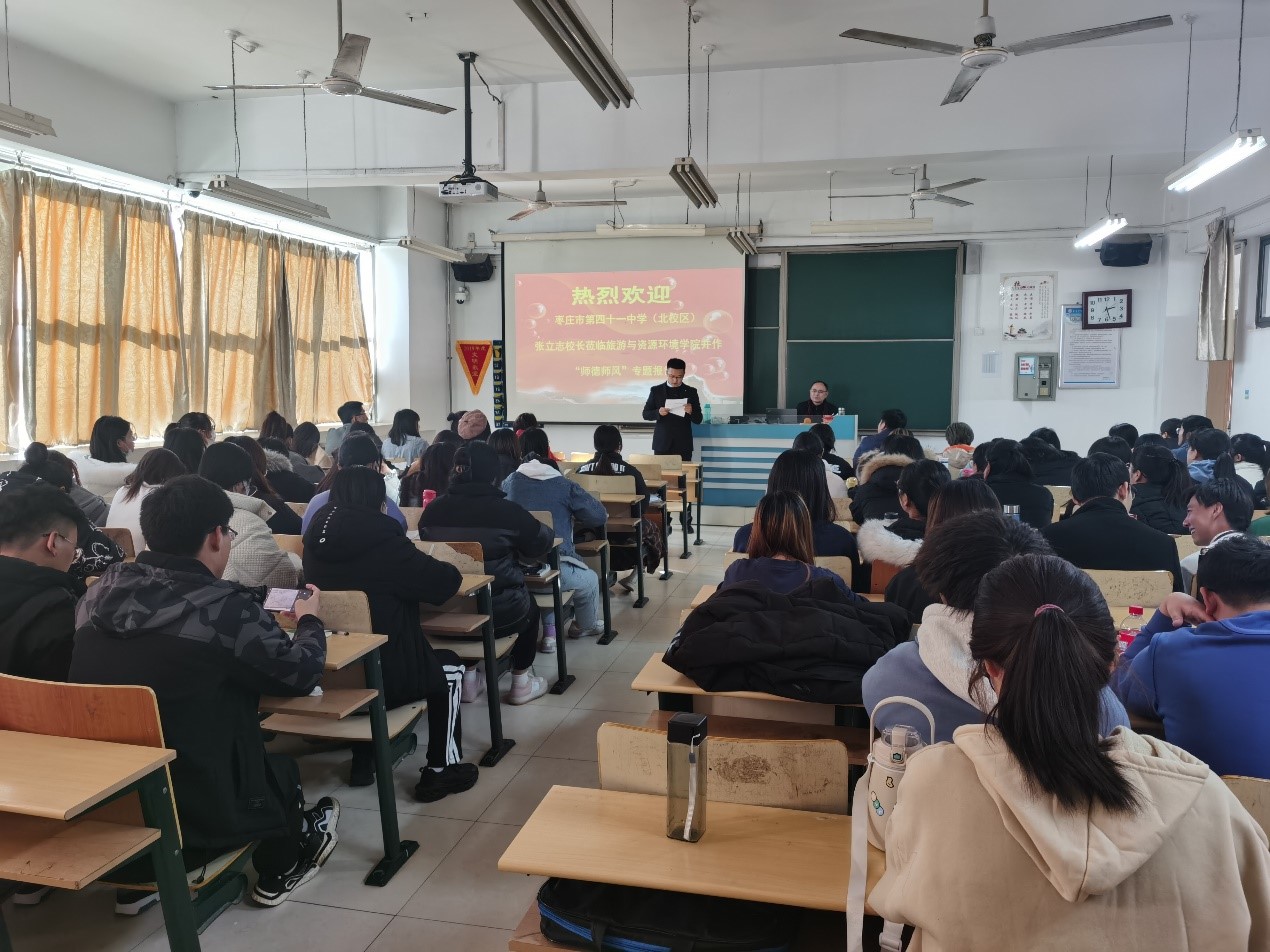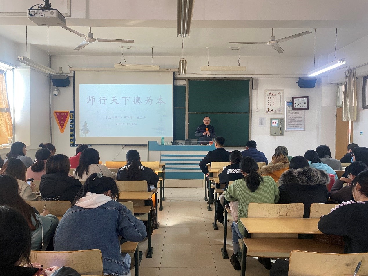 学高为师,德高为范。师德是教师之魂。为加强全院师德师风和学风建设,引导师范生争做新时代党和人民满意的“四有”好老师。11月30日下午在理工楼2404教室,hth华体育官网邀请枣庄市市中区优秀教育工作者、枣庄市地理学科带头人、枣庄市第四十一中学校长、高级教师张立志作师德师风专题报告。学院全体专任教师与2019级、2020级地理科学专业师范生聆听了报告。报告会由副院长张大文主持。