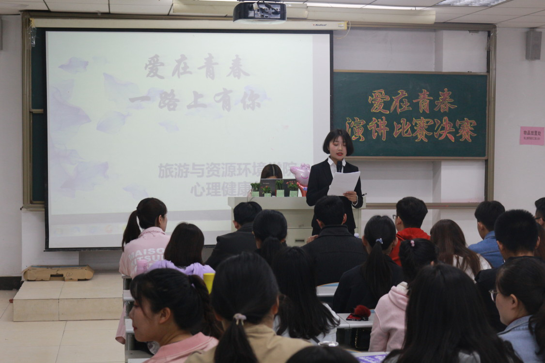 赛前,孔老师就“大学生心理健康”这一话题发表相关讲话,并对此次活动给予高度的重视。参赛选手们以“爱在青春,圆我梦想”为主题,既有致过去或将来自己的一封信,也有青春中努力奋斗的艰难心路。参赛选手们的演讲风格迥异,或是激情昂扬、或是委婉抒情、或是对话互动。他们从不同角度,以独特的方式诠释了他们正在经历的青春。