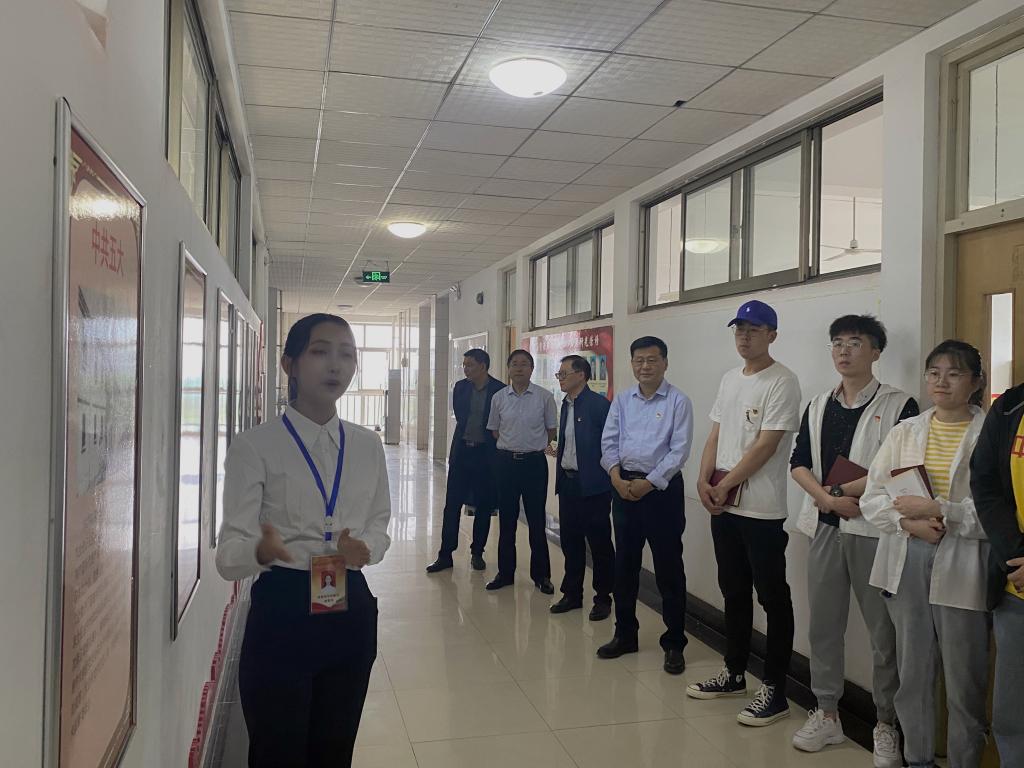 5月19日,省委党史学习教育第四巡回指导组成员苗素军在校党委委员、宣传部部长张昌林陪同下到hth华体育官网调研指导百年党史文化展大学生宣讲活动。