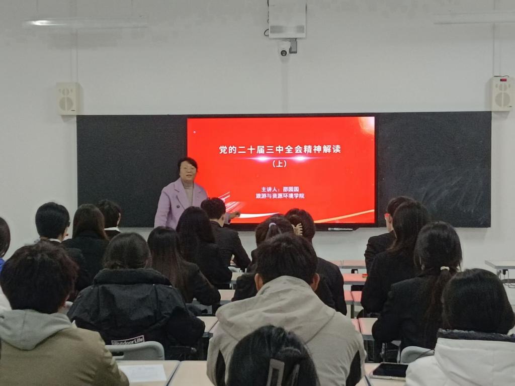《党的二十届三中全会精神解读》主题课程由hth华体育官网团委书记邵园园主讲,主讲人紧扣主题,带领同学们深入学习习近平总书记在党的二十届三中全会上的重要讲话,引导青年学生深入学习领会党的二十届三中全会精神,领悟“两个确立”的决定性意义,进一步增强“四个意识”、坚定“四个自信”、做到“两个维护”,鼓励广大青年学子坚定理想信念,勇做走在时代前列的奋进者、开拓者、奉献者,为实现中华民族伟大复兴的中国梦不懈奋斗。
