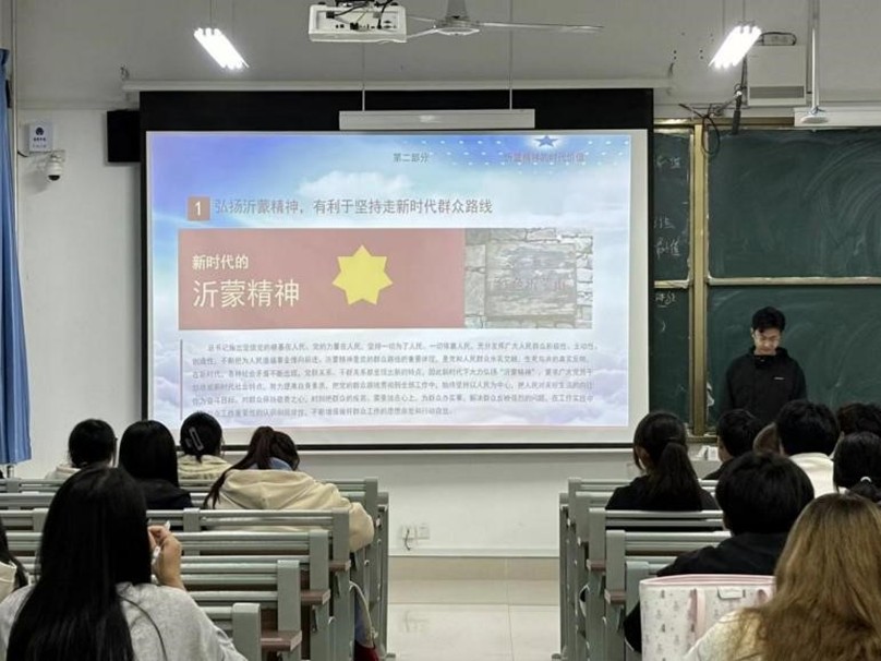 《弘扬沂蒙精神,不忘青马工程初心》主题课程由hth华体育官网团学干部王璐璟主讲。主讲人围绕“沂蒙精神的形成背景、基本内涵、时代价值及新时代如何传承”四个方面展开宣讲,通过讲述革命年代沂蒙人民英勇奋斗的真实故事,生动展现了沂蒙精神“党群同心、军民情深、水乳交融、生死与共”的丰富内涵,使同学们深刻感受到历史的厚重与家国情怀的深远。