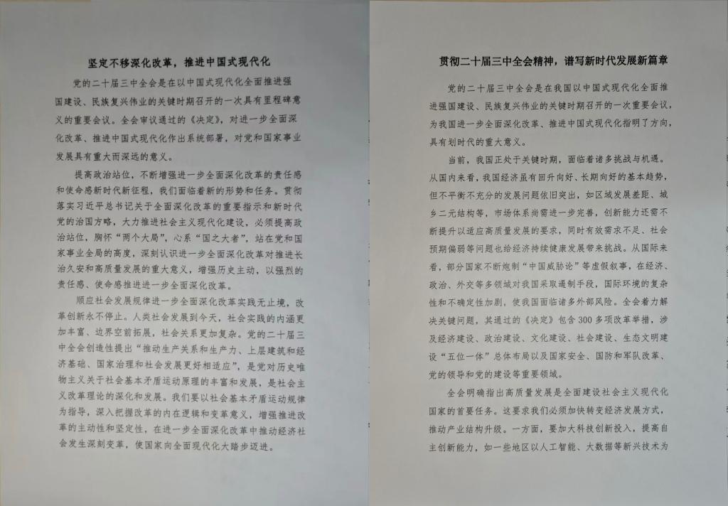 为深入学习宣传二十届三中全会精神,进一步激励青年学子凝聚奋进动力,厚植家国情怀,11月10日至12日,hth华体育官网举办“学习贯彻党的二十届三中全会精神”主题征文活动,此次活动由学院在校学生积极参与。