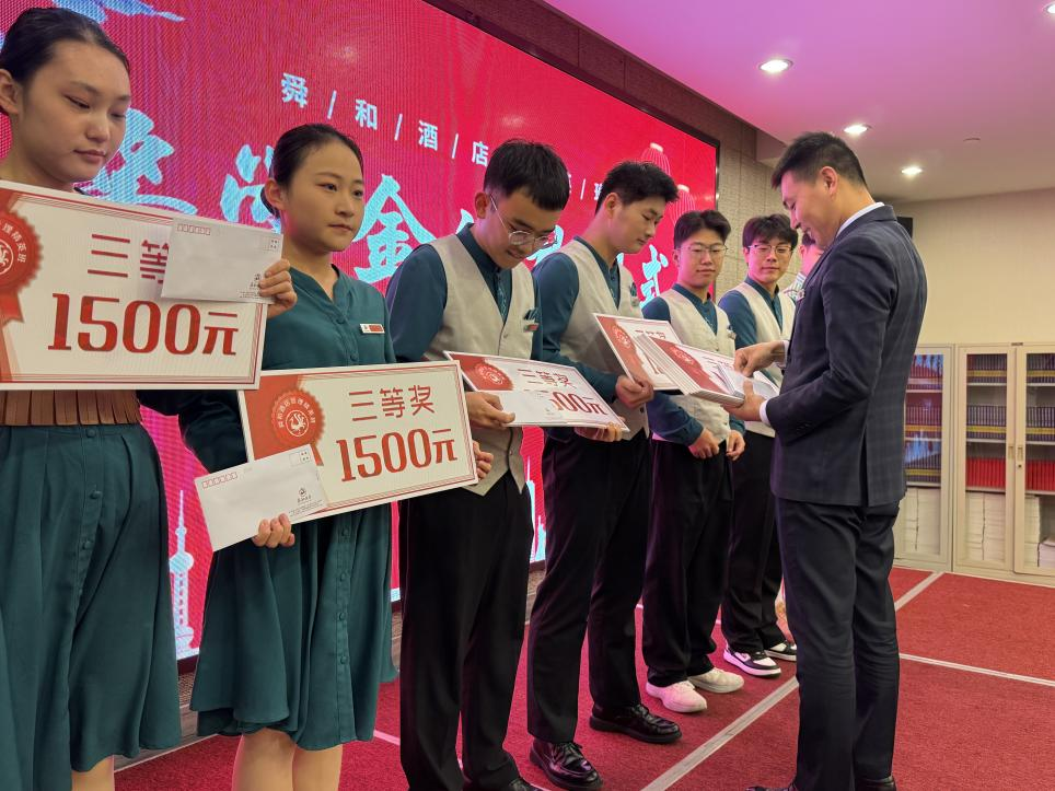 酒店经理首先对本次获奖同学表示热烈祝贺,表示同学们通过半年的顶岗实习,基本打破思想的舒适圈,能够做到理论与实践相结合,打牢基础,在实践中不断磨练自己,突破自我,为基本具备一名优秀职业经理人的素质。山东舜和酒店集团与hth华体育官网hth华体育官网深化产教融合,制定了“项目化实习方案”,对顶岗实习开展过程性评价,有效地提高合作办学质量,突出了校企联合培养的优势,实现了hth华体育官网hth华体育官网与舜和酒店集团优势互补、深度融合、互利共赢。