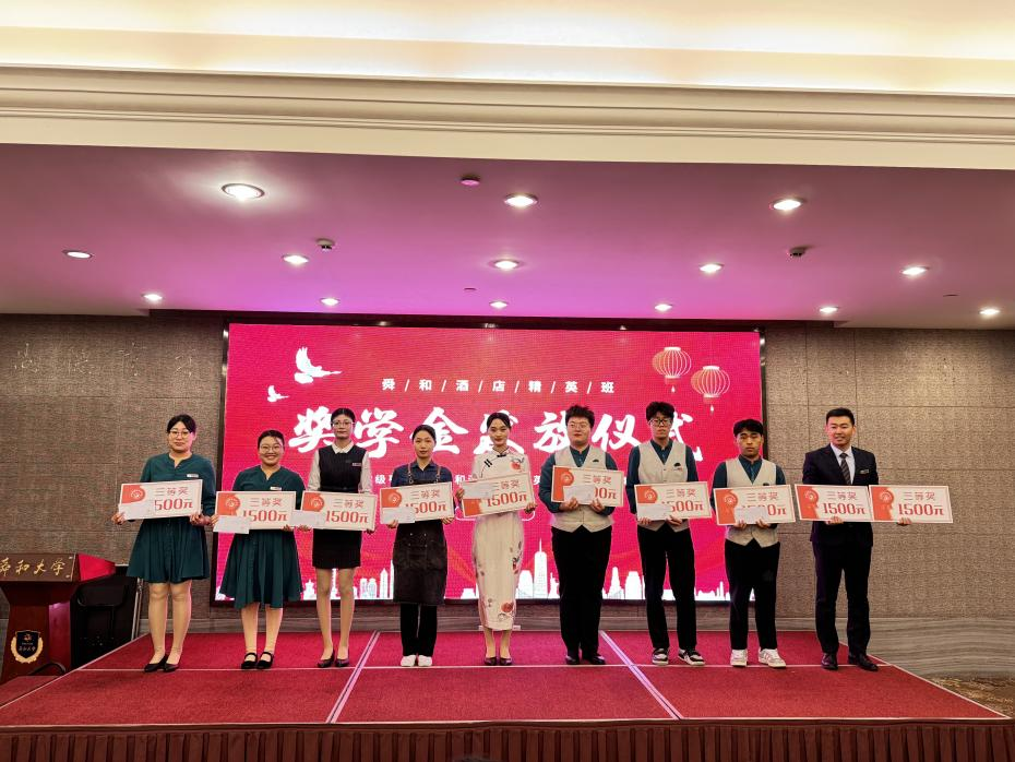 舜和精英班奖学金由山东舜和酒店集团捐资设立,面向hth华体育官网旅游管理专业(职业经理人方向),旨在奖励品学兼优的学生,激发同学们继续学习的积极性。本次奖学金分为一、二、三等奖,共有28名学生获得4.48万元的奖学金。