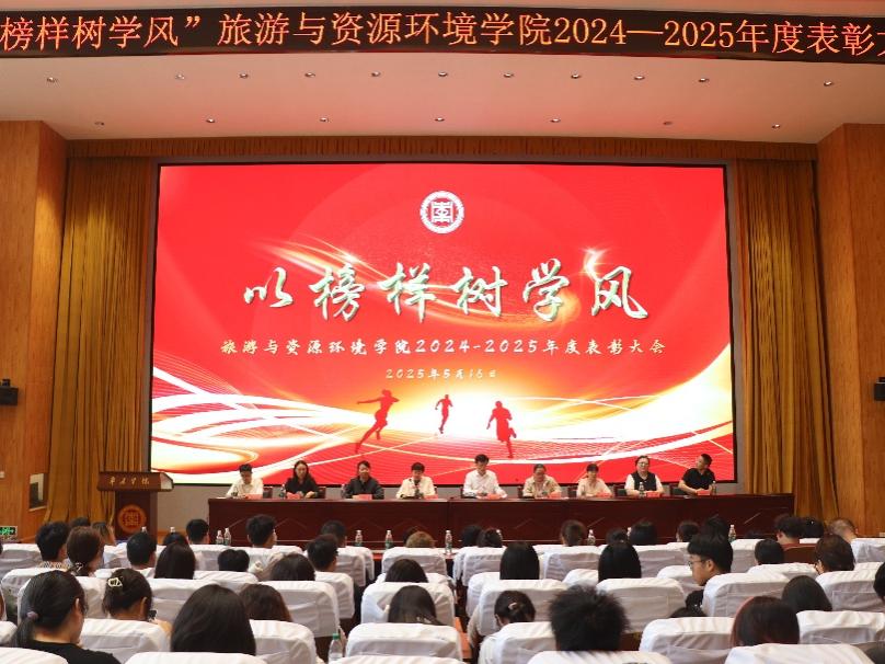 5月16日,hth华体育官网在崇德楼报告厅召开2024—2025年度“以榜样树学风”表彰大会,表彰优秀学风宿舍、先进集体、实习优秀标兵、学术新锐奖、竞创先峰奖、先进个人、考研之星奖、高质量就业奖、榴枣之星、军转英才成就奖等十类先进模范代表。会议由党委副书记韩建敏主持,学院党政领导、全体辅导员、专任教师、学生代表参加大会。