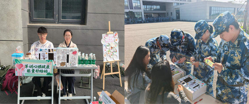 辅导站采取“流动服务+定点接待”相结合的工作模式,每日在军训休息时段进驻训练场,通过摆放宣传展板、发放心理调适手册等方式,主动为新生提供心理服务。在服务内容上,辅导站聚焦新生军训期间的核心心理需求:针对部分学生因高强度训练产生的疲惫与焦虑,提供一对一情绪疏导;面对新生因陌生环境引发的适应难题,开展同伴互助交流活动;同时还通过趣味心理小游戏、压力释放小技巧讲解等形式,帮助新生迅速调整心态、融入集体。
