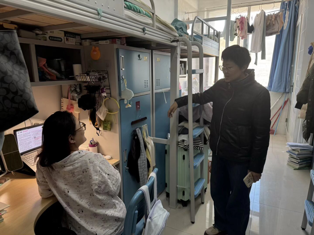 检查期间,党员教师以问题为导向,牵头推进两大核心任务,开展系统性检查工作:一方面,持续推进安全隐患排查,重点检查大功率电器违规使用、私拉乱接电线等违规行为,现场向同学们重申安全用电规范知识,切实强化同学们的安全防范意识与责任意识;另一方面,精准开展卫生环境督导,针对部分宿舍存在的垃圾堆放、地面清洁不到位等问题,党员教师逐项指出并提出标准化整改建议。同时,老师们还化身“成长导师”,与学生展开深度交流,通过现场示范与耐心引导,将安全教育融入日常对话,为构建平安和谐的居住与学习环境贡献先锋力量。