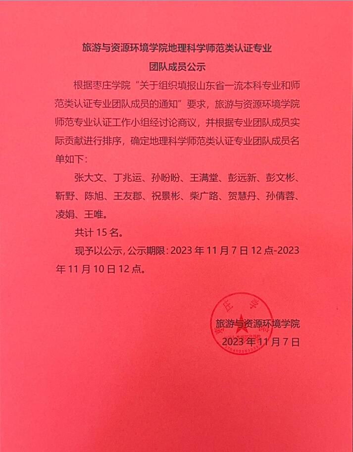 hth华体育官网地理科学师范类认证专业团队成员公示