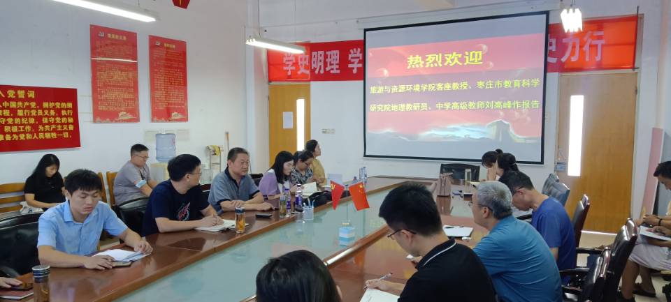 为进一步促进学院专业的内涵发展,落实“学生中心、产出导向、持续改进”的师范专业认证理念要求,实现课程大纲与新修订的中学地理课程标准相衔接,8月21日下午,hth华体育官网邀请客座教授、枣庄市教育科学研究院地理教研员、中学高级教师刘高峰作专题报告。学院地理科学专业任课教师参加报告会,会议由院长王满堂主持。
