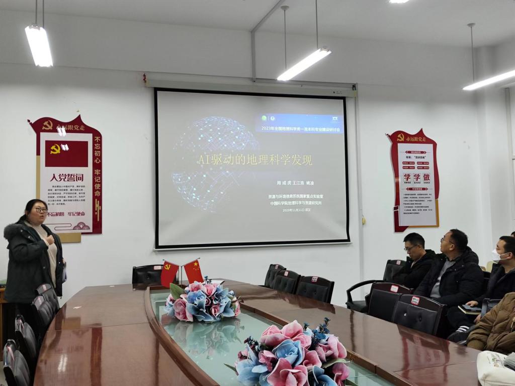 汇报会上,凌娟老师分享了中国科学院周成虎院士的《AI智能驱动地科科学发展》的报告。该报告指出了各个地科学科的分裂与复兴,分析了大数据技术和人工智能在地理学科应用现状和发展趋势,并提出大力发展地理大模型的倡议。彭文彬老师分享了国内高校地理科学类一流本科专业建设过程中的人才培养模式、教学团队建设以及野外实习等方面的内容,重点分享了湖南文理学院联合旅游地理、人文地理、经济地理等相关课程建设“七一”教学团队的经验和思路以及其他高校为提升地理科学专业师范生野外技能而开展野外联合大实习的规划思路。