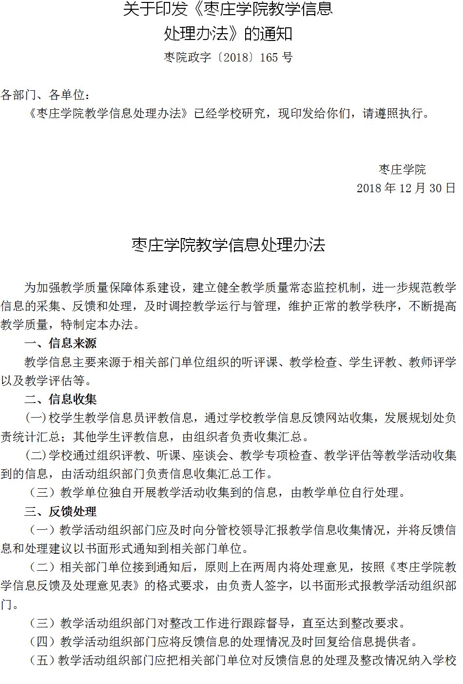 关于印发《hth华体育官网教学信息处理办法》的通知