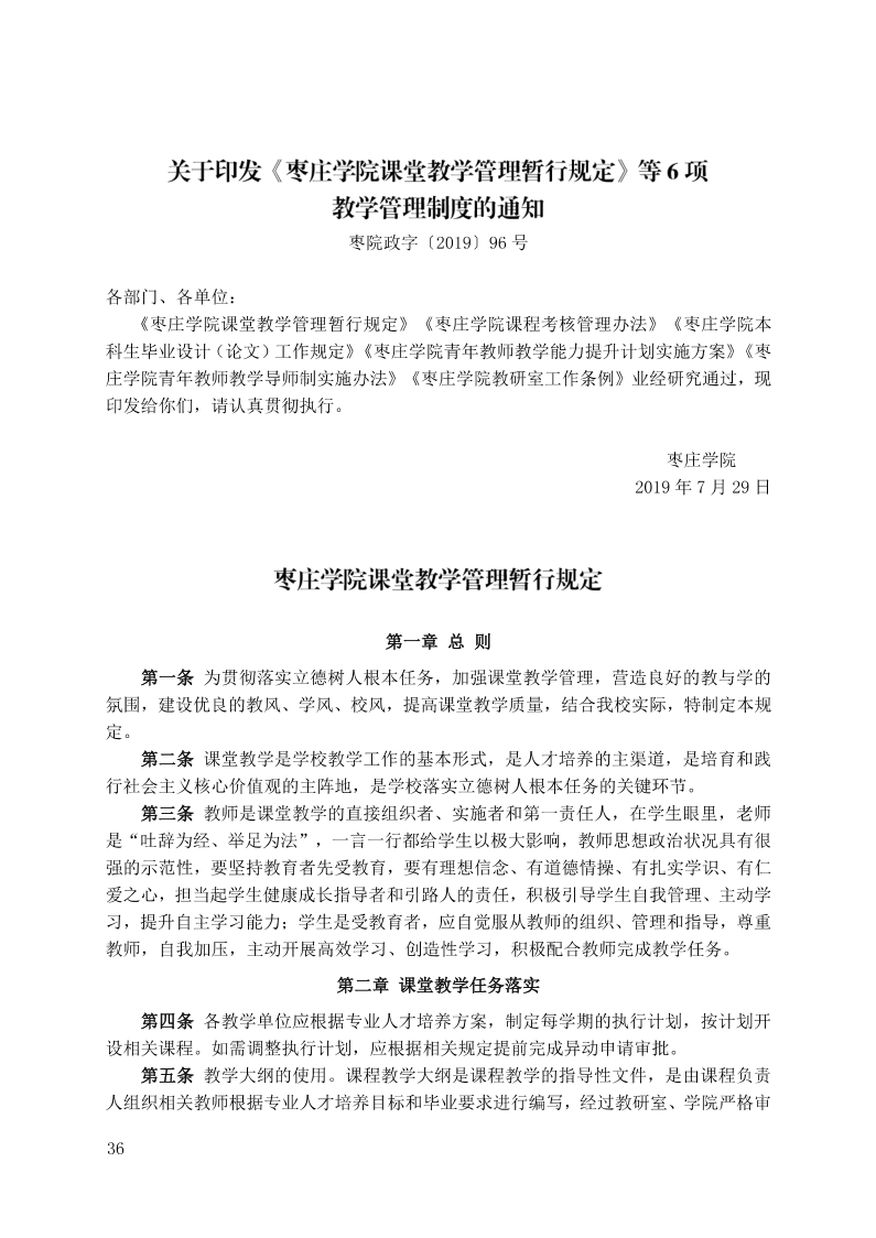 关于印发《hth华体育官网课堂教学管理暂行规定》等6项教学管理制度的通知