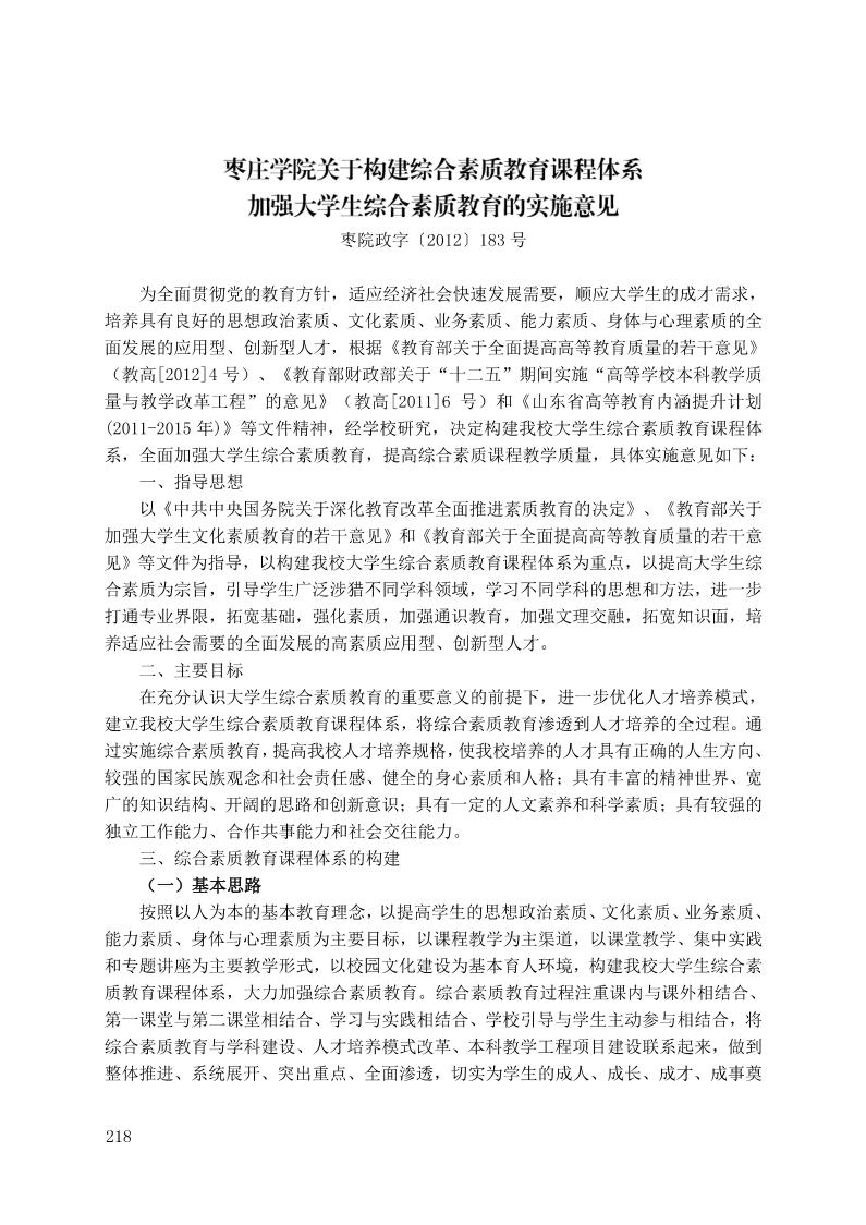 hth华体育官网关于构建综合素质教育课程体系加强大学生综合素质教育的实施意见