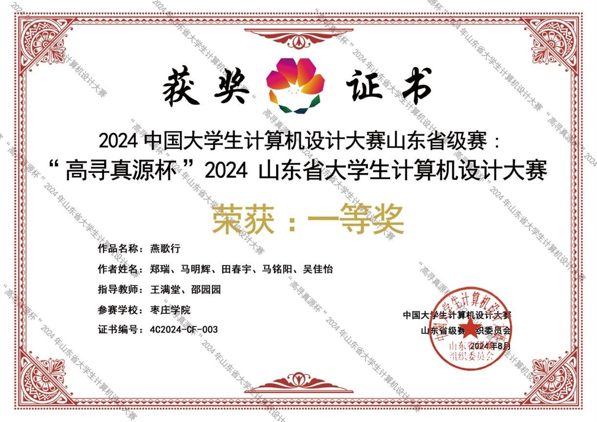 近日,2024年(第17届)中国大学生计算机设计大赛各类别赛事全面落下帷幕。hth华体育官网地理信息科学专业(与中科特瑞校企合作)的学生获得全国三等奖1项,山东省一等奖1项、二等奖2项、三等奖3项的优异成绩。