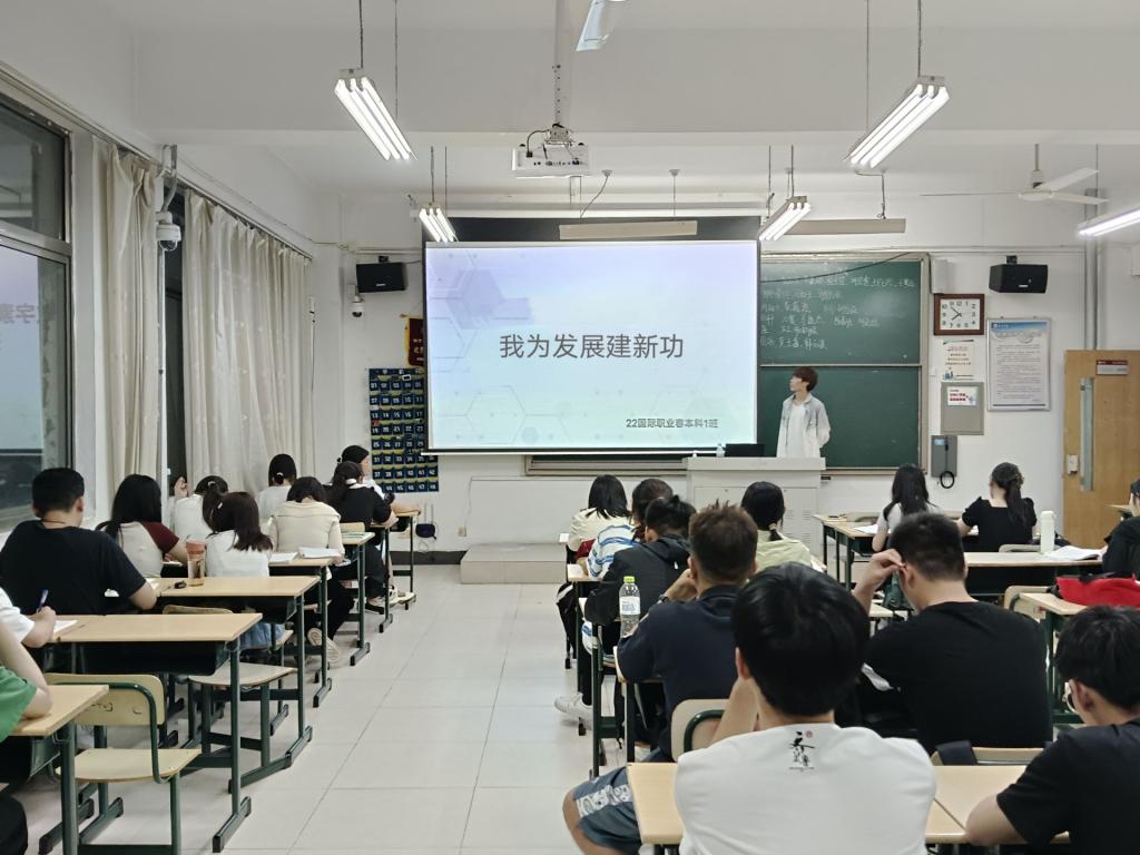 为深入开展学习贯彻习近平新时代中国特色社会主义思想主题教育,引领学生为强国建设作贡献,6月11日,hth华体育官网在理工楼各教室开展“我为发展建新功”主题团日班会。