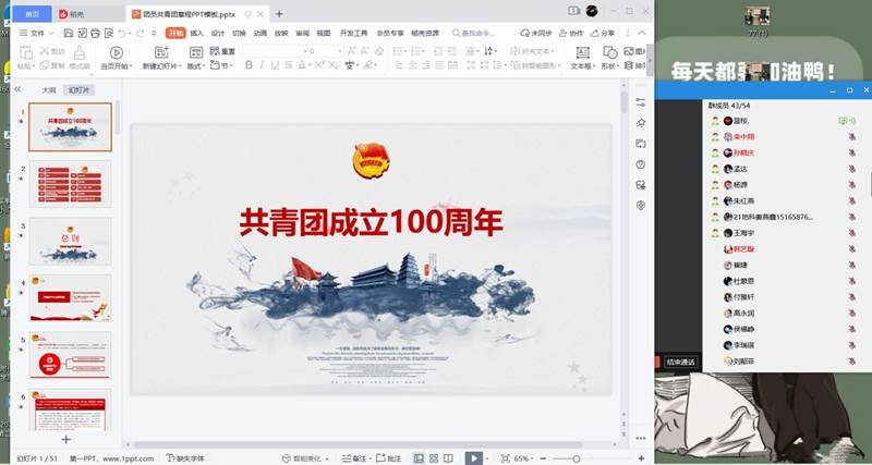 为庆祝中国共产主义青年团成立100周年,鼓励青年学生积极传承弘扬先辈昂扬精神,4月28日,hth华体育官网各团支部开展“庆祝共青团成立100年”线上主题团日活动。