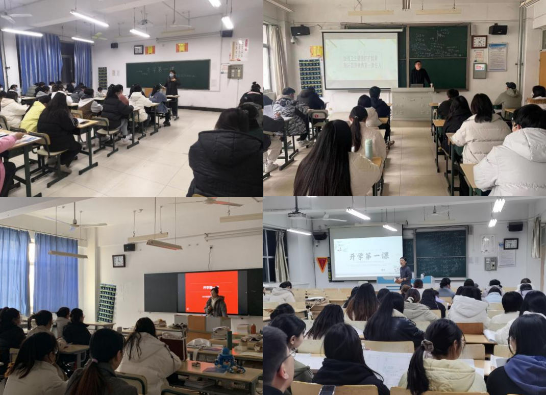 本学期开学第一课主要从思想政治教育、健康卫生教育、心理健康教育、安全教育以及文明行为教育五个方面展开。会上,班主任老师号召同学们深入学习党的二十大精神,坚持以习近平新时代中国特色社会主义思想筑魂育人,弘扬社会主义核心价值观;树立“做好自身健康第一责任人”理念,坚持戴口罩、勤洗手等良好卫生习惯;培养积极乐观、自尊自信、坚韧顽强等良好的心理品质,促进其身心全面和谐发展;强化安全防范意识,提高逃生避险和自救自护能力,远离伤害和危险,避免和减少意外事件的发生;提高创建文明城市、文明校园意识,参与和支持文明城市、文明校园创建,践行立德树人德育实践活动,养成良好的文明礼仪行为。