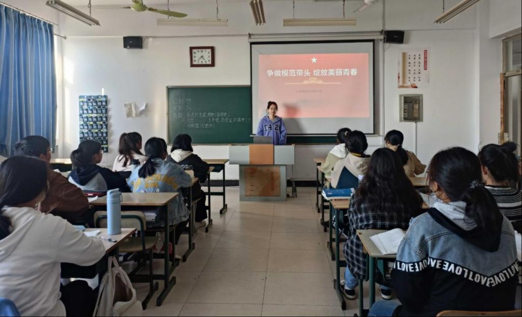 为深入学习榜样模范带头作用,发扬团员无私奉献、勇于担当精神,10月10日,hth华体育官网在理工楼各教室召开“争做模范先锋,绽放美丽青春”主题团日班会。