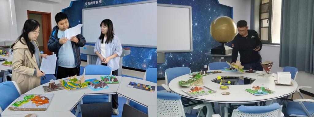 大赛伊始,参赛人员展示参赛作品,作品种类丰富,涵盖地形地貌、气候环境、人口城市等众多地理学科领域。同时参赛选手结合自身参赛作品,详细讲解模型的设计理念、所体现的地理内容以及制作过程中的难点与突破,展现出其扎实的地理知识功底和对地理学科的浓厚热情。最后,评委老师从“教育性与科学性、操作性与趣味性、创新性与艺术性”三个方面对作品进行综合打分,并鼓励学生在今后的学习旅程中,持续保持探索精神,勇于创新实践。