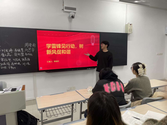 会上,各班团支书结合ppt,围绕雷锋的生平和雷锋精神的内涵,从不同角度对新时代雷锋精神的理解进行阐述,带领同学们重温雷锋同志身上体现出的钉子精神、爱岗敬业精神、艰苦奋斗精神、勤俭节约精神、锐意进取和自强不息的创新精神,号召全体同学要以雷锋为榜样,做到关心他人、乐于助人、无私奉献,用自己的实际行动诠释雷锋精神的深刻内涵。同时各班级还结合自身实际情况,开展形式多样的学雷锋活动,如义务劳动、志愿服务、帮扶困难同学等,同学们积极参与,用实际行动践行雷锋精神。