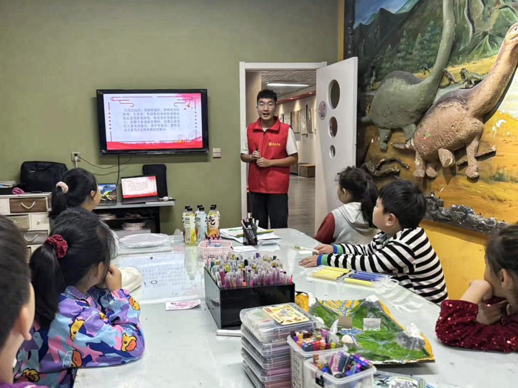 活动伊始,实践团以生动的语言和饱满的激情带领小朋友们从沂蒙精神的历史渊源、具体体现及其当代价值出发,深入剖析沂蒙精神的深刻内涵与意蕴,使小朋友们对沂蒙精神有了更加深刻的认识。同时通过分享沂蒙红嫂明德英的感人事迹以及沂蒙六姐妹故事,进一步激发小朋友们对红色历史的浓厚兴趣,随后以互动提问的方式,将沂蒙精神的内涵与小朋友们的日常生活紧密联系,引导小朋友们思索今日的美好生活多么来之不易。