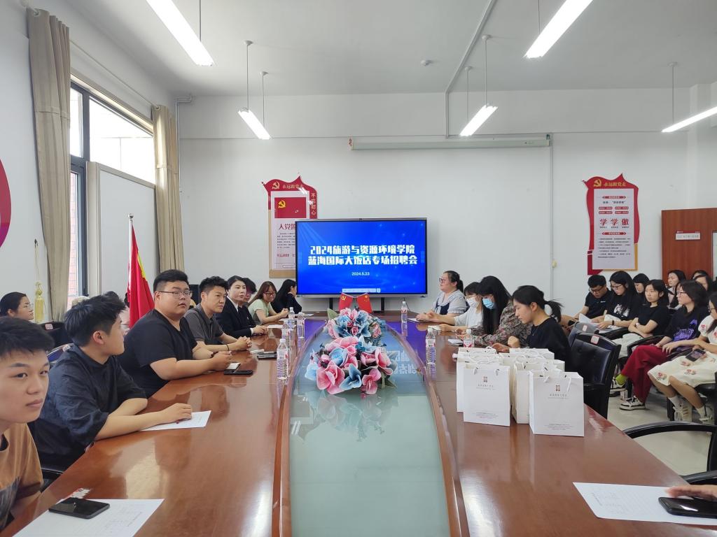 5月23日,hth华体育官网在豁然楼A415成功举办蓝海国际大酒店毕业实习专场招聘会。本次会议由辅导员翟国琳主持,2020级酒店管理、旅游管理专业毕业生参加。