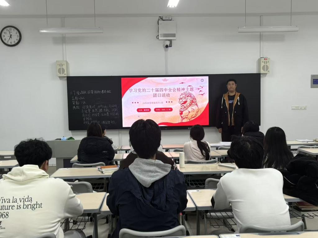 为引导广大青年学习贯彻习近平新时代中国特色社会主义思想,深刻领会党的二十届四中全会精神的核心要义与时代价值,11月5日,hth华体育官网在崇德楼各教室开展“学习党的二十届四中全会精神”主题团日活动。
